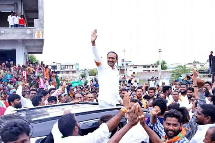 బీజేపీ రాష్ట్ర ఎన్నికల నిర్వహణ కమిటీ చైర్మన్, హుజురాబాద్ ఎమ్మెల్యే ఈటల రాజేందర్కు ప్రజలు బ్రహ్మరథం పట్టారు. కొత్త బాధ్యతలతో తొలిసారి హుజురాబాద్ గడ్డ పై అడుగుపెట్టిన సందర్భంగా ఘన స్వాగతం పలికారు. ఈటల రాజేందర్ నాయకులను, కార్యకర్తలను, ప్రజలను ఆప్యాయంగా పలకరిస్తూ.. కరచాలనం చేస్తూ ముందుకు సాగారు. ఈ సందర్భంగా ఈటల మాట్లాడుతూ పార్టీ నాయకులకు, కార్యకర్తలకు, అభిమానులకు, ప్రజలందరికీ హృదయపూర్వక కృతజ్ఞతలు తెలిపారు. భారతీయ జనతా పార్టీ అధికారంలోకి రావాలని రాష్ట్రం అంతా ఎదురుచూస్తోందని అన్నారు. మీ బిడ్డగా మీరు గర్వపడేలా రాబోయే ఎన్నికల్లో నియంతృత్వ పాలనకు చరమగీతం పాడేందుకు ఒక సైనికునిలా పోరాడుతానని స్పష్టం చేశారు. బీజేపీని నిండు మనస్సుతో ఆశీర్వదించాలని కోరారు.