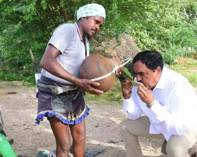 కల్లు తాగమన్న గౌడన్న.. కాదనలేక దమ్ముపట్టిన మంత్రి ఎర్రబెల్లి