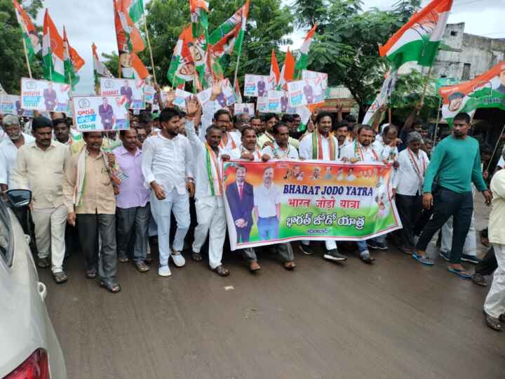 బేల : రాహుల్ గాంధీ భారత్ జోడోయాత్ర దేశ చరిత్రలోనే ఒక సంచలనమని కాంగ్రెస్ రాష్ట్రరాష్ట్ర నాయకులు కంది శ్రీనివాసరెడ్డి అన్నారు. గత సంవత్సరం సెప్టెంబర్ 7న కాశ్మీర్ నుంచి కన్యాకుమారి వరకు 12 రాష్ట్రాలు, రెండు కేంద్ర పాలిత ప్రాంతాల నుంచి 145 రోజుల పాటు 4,081 కిలోమీటర్లు కొనసాగిన ఈ యాత్ర దేశంలో నెలకొన్న పరిస్థితుల్ని ప్రజలకు చేరవేసిందన్నారు. యాత్ర మొదటి వార్షికోత్సవాన్ని పురస్కరించుకొని ఆదిలాబాద్ జిల్లా బేల మండల కేంద్రంలో కంది శ్రీనివాస రెడ్డి నేతృత్వంలో పాదయాత్ర చేపట్టారు. స్థానిక అంబేడ్కర్ చౌరస్తా వరకు చేపట్టిన ఈ పాదయాత్రలో భారీ సంఖ్యలో కాంగ్రెస్ శ్రేణులు, కేఎస్ఆర్ అభిమానులు పాల్గొన్నారు. కాంగ్రెస్ జెండాల రెపరెపలతో పాదయాత్ర ఆధ్యంతం త్రివర్ణ శోభితమైంది.