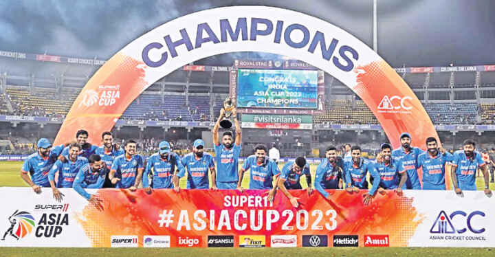 భారత్‌.. రికార్డు స్థాయిలో ఎనిమిదో సారి ఆసియా కప్‌ విజేతగా అవతరించింది టీమ్‌ ఇండియా. ఆదివారం కొలంబోలోని ఆర్‌.ప్రేమదాస స్టేడియంలో జరిగిన ఆసియా కప్‌ ఫైనల్లో డిఫెండింగ్‌ చాంపియన్‌ శ్రీలంకపై 10 వికెట్ల తేడాతో అత్యంత ఏకపక్ష విజయం సాధించింది. 51 పరుగుల అతి స్వల్ప లక్ష్యాన్ని 6.1 ఓవర్లలోనే ఛేదించిన టీమ్‌ ఇండియా..మరో 263 బంతులు మిగిలి ఉండగానే ఎనిమిదో ఆసియా కప్‌ టైటిల్‌ను సొంతం చేసుకుంది. యువ ఓపెనర్లు శుభ్‌మన్‌ గిల్‌ (27 నాటౌట్‌, 19 బంతుల్లో 6 ఫోర్లు), ఇషాన్‌ కిషన్‌ (23 నాటౌట్‌, 18 బంతుల్లో 3 ఫోర్లు) అజేయ భాగస్వామ్యంతో శ్రీలంకపై చెలరేగారు. అంతకుముందు, తొలుత బ్యాటింగ్‌ చేసిన డిఫెండింగ్‌ చాంపియన్‌ శ్రీలంకపై మహ్మద్‌ సిరాజ్‌ (6/21) విరుచుకుపడ్డాడు. పది బంతుల వ్యవధిలో ఐదు వికెట్లు పడగొట్టిన సిరాజ్‌కు హార్దిక్‌ పాండ్య, బుమ్రా తోడటంతో శ్రీలంక 15.2 ఓవర్లలో 50 పరుగులకే కుప్పకూలింది. శ్రీలంక బ్యాటర్లలో కుశాల్‌ మెండిస్‌ (17), దుశాన్‌ హేమంత (13 నాటౌట్‌) రెండెంకల స్కోరు అందుకున్నారు. ఆరు వికెట్ల మొనగాడు మహ్మద్‌ సిరాజ్‌ ‘మ్యాన్‌ ఆఫ్‌ ది మ్యాచ్‌’గా నిలిచాడు.