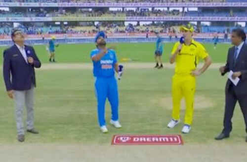 రాజ్‌కోట్‌లో టీమిండియాతో జరుగుతున్న ఆఖరి వన్డేలో టాస్ గెలిచిన ఆస్ట్రేలియా, బ్యాటింగ్ ఎంచుకుంది. మొదటి రెండు మ్యాచులకు దూరంగా ఉన్న కెప్టెన్ రోహిత్ శర్మ, విరాట్ కోహ్లీ, కుల్దీప్ యాదవ్ నేటి మ్యాచ్ ద్వారా రీఎంట్రీ ఇస్తున్నారు. ఇప్పటికే తొలి రెండు వన్డేలు గెలిచిన భారత జట్టు 2-0 తేడాతో వన్డే సిరీస్ గెలిచింది. నేటి మ్యాచ్‌లో గెలిస్తే, సిరీస్ క్లీన్ స్వీప్ చేస్తుంది. ఇప్పటివరకూ ఆస్ట్రేలియాపై వన్డే సిరీస్ క్లీన్ స్వీప్ చేయలేకపోయింది. అలాగే తన్వీర్ సంఘా నేటి మ్యాచ్ ద్వారా ఆరంగ్రేటం చేస్తున్నాడు.