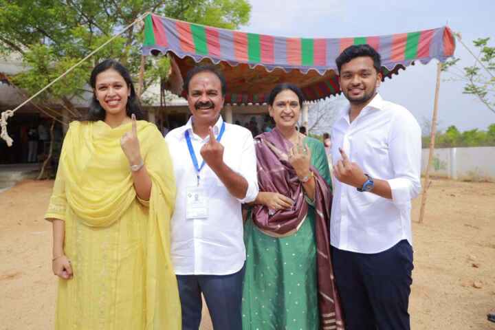 చేవెళ్ల కాంగ్రెస్, బీజేపీ అభ్యర్థులు రంజిత్రెడ్డి, కొండా విశ్వేశ్వర్రెడ్డి తమ కుటుంబంతో సహా పోలింగ్ కేంద్రానికి వచ్చి ఓటు హక్కు వినియోగించుకున్నారు.