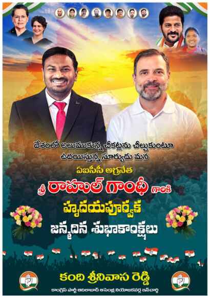 రాహుల్గాంధీకి హృదయపూర్వక జన్మదిన శుభాకాంక్షలు : కంది శ్రీనివాసరెడ్డి