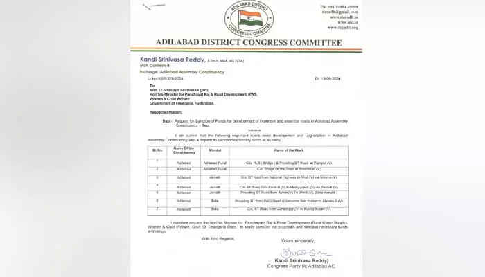 ఆదిలాబాద్ నియోజకవర్గంలోని వివిధ అభివృద్ధి పనులకు రూ.10కోట్లు మంజూరైనట్లు నియోజకవర్గ కాంగ్రెస్ పార్టీ ఇన్చార్జి కంది శ్రీనివాసరెడ్డి తెలిపారు. సీఆర్ఆర్ ప్లేన్ గ్రాంట్స్ కింద బీటీ డోడ్, బ్రిడ్జి పనుల నిమిత్తం రూ.10 కోట్లు విడుదల అయ్యాయని అన్నారు. గతంలో నియోజక వర్గంలో పలు అభివృద్ధి పనుల కోసం నిధులు మంజూరు చేయాలని సీఎం రేవంత్ రెడ్డికి పంచాయతీ రాజ్, స్త్రీ మహిళా శిశుసంక్షేమ శాఖ మంత్రి,జిల్లా ఇన్చార్జి మంత్రి సీతక్కకు లేఖల ద్వారా ప్రపోజల్స్ పంపినట్టు ఆయన తెలిపారు.