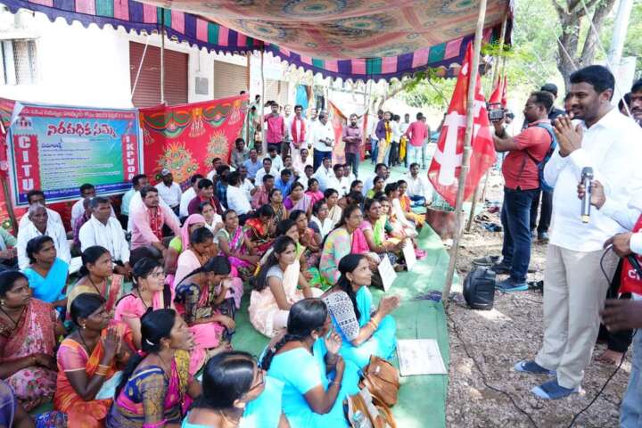 ఆదిలాబాద్: సమస్యలు పరిష్కరించాలని, కనీస వేతనం అమలు చేయాలని డిమాండ్ చేస్తూ ఐకేపీ వీఓఏలు ఆదిలాబాద్ కలెక్టరేట్ ఎదుట చేపట్టిన నిరవధిక సమ్మెకు బీజేపీ రాష్ట్ర నాయకులు కంది శ్రీనివాసరెడ్డి మద్దతు తెలిపారు. సమ్మె శిబిరానికి వెళ్లి వారికి సంఫీుభావం ప్రకటించారు. తెలంగాణ రాష్ట్ర ప్రభుత్వం చాలీచాలని గౌరవ వేతనం చెల్లించి ఐకేపీ వీఓఏలతో వెట్టిచాకిరి చేయించుకుంటోందని మండిపడ్డారు. ప్రస్తుత పరిస్థితుల్లో ఇచ్చే డబ్బులు ఏమేరకు సరిపోతాయని, ప్రభుత్వానికి అసలు సోయి ఉందా అని ధ్వజమెత్తారు. కనీస వేతనం 26 వేలు చెల్లించి వారిని సెర్ప్ ఉద్యోగులుగా గుర్తించాలని, పది లక్షల వరకు ఆరోగ్య బీమా వర్తింపజేయాలని, ఇతర న్యాయబద్ధమైన డిమాండ్లు నెరవేర్చాలని అన్నారు. తనవంతు తక్షణసాయంగా వారికి 25 వేల రూపాయలను ప్రకటించారు. ప్రభుత్వం దిగొచ్చి డిమాండ్లు నెరవేర్చేవరకూ సమ్మెను కొనసాగించాలని, తాను అండగా ఉంటానని చెప్పారు.