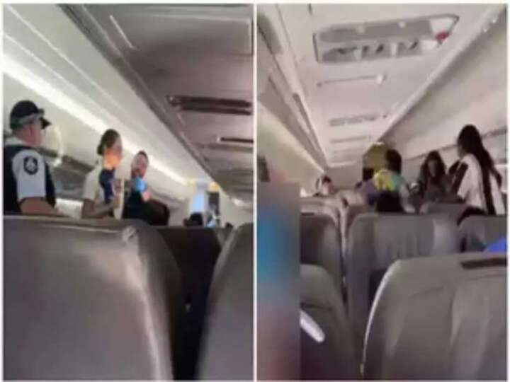 విమానం గాల్లో ఉండగానే.. ప్రయాణికుల సిగపట్లు..