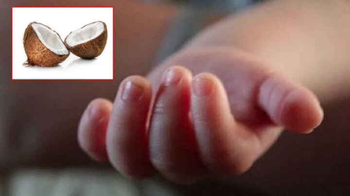 గొంతులో కొబ్బరి ముక్క ఇరుక్కొని చిన్నారి మృతి..