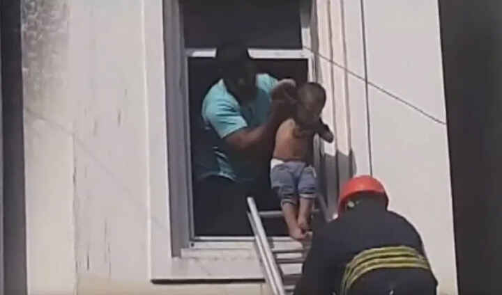 మంటల్లో చిక్కుకున్న చిన్నారి, మహిళను రక్షించిన రెస్క్యూ టీమ్