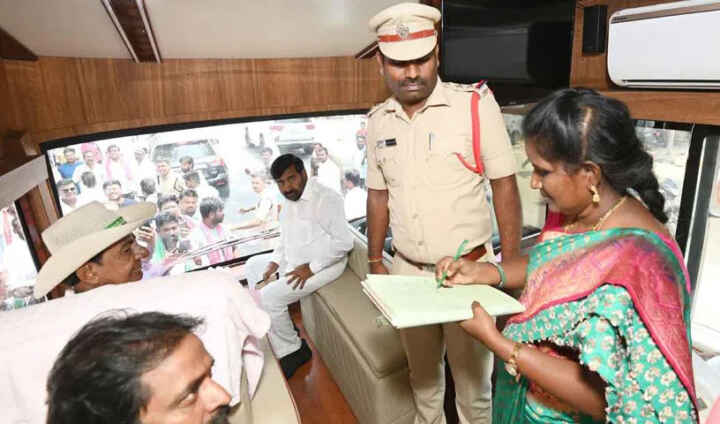 కేసీఆర్ ప్రయాణిస్తున్న బస్సును తనిఖీ చేసిన పోలీసులు