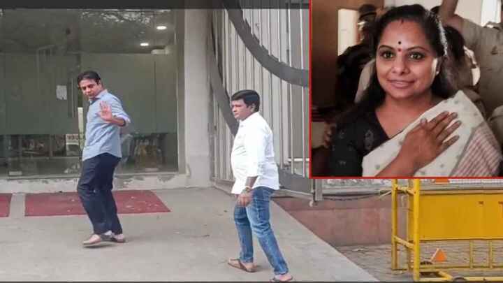 కవితను విచారిస్తున్న సీబీఐ.. కలిసిన కేటీఆర్