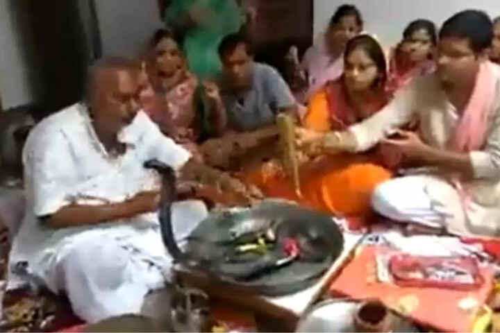 నల్ల తాచుకు నిర్భయంగా కుటుంబం పూజలు..!