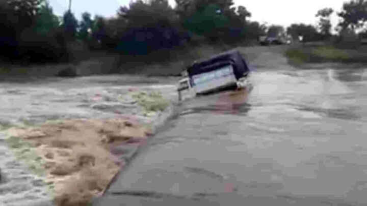 అలుగు వాగులో కొట్టుకుపోయిన బొలెరో వాహనం