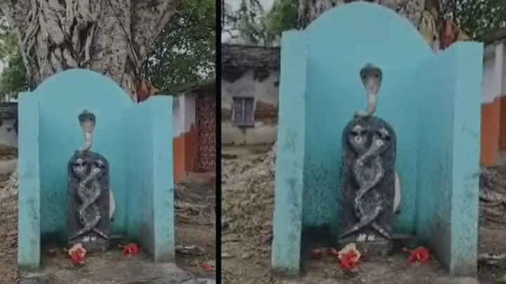 నాగదేవత విగ్రహంపై ప్రత్యక్షమైన నాగుపాము.. పెద్దపల్లి జిల్లో ఓదెల గ్రామంలో ఘటన