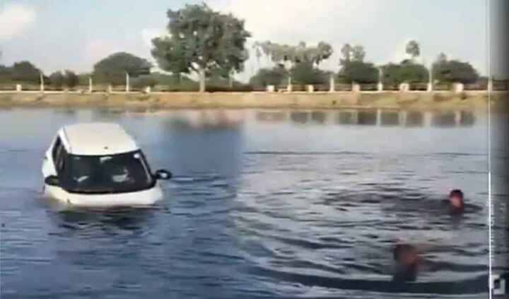 డ్రైవింగ్ నేర్చుకుంటుండగా చెరువులోకి కారు.. స్థానికుల సాయంతో సురక్షితంగా బయటికి బాధితులు..