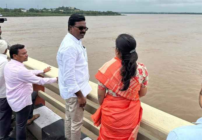 హైదరాబాద్ : తెలంగాణ రాష్ట్ర రవాణా శాఖ మంత్రి పువ్వాడ అజయ్ కుమార్, తెలంగాణ రాష్ట్ర ప్రభుత్వ విప్ రేగా కాంతారావు భద్రాచలం వద్ద గోదావరి వరద ఉధృతిని పరిశీలించారు. అనంతరం గోదావరి వరద ఉధృతంగా ప్రవహిస్తున్న నేపథ్యంలో తీసుకోవాల్సిన రక్షణ చర్యలపై చర్చించారు. అధికారులకు కీలక ఆదేశాలు జారీ చేశారు.