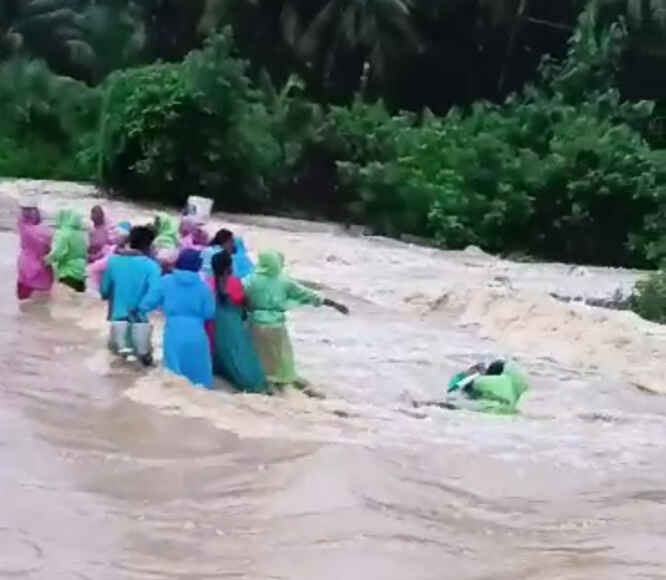 వాగు ఉధృతంగా ప్రవహిస్తుండంటతో దాదాపు 10 మంది కూలీలు ఒకరి చేయి ఒకరు పట్టుకొని జాగ్రత్తగా వాగు దాటే ప్రయత్నం చేసారు. వాగు మధ్యలోకి చేరుకోగానే.. వరద ఉద్ధృతి పెరిగింది. దీంతో తల్లీ కూతుళ్లు వాగులో కొట్టుకుపోయారు. వాగు పక్కనే ఉన్న స్థానికులు హుటాహుటిన పరుగెత్తి కూతుర్ని రక్షించారు. తల్లి మాత్రం వాగులో కొట్టుకుపోయింది. కొట్టుకుపోయిన మహిళ కోసం గాలింపు చర్యలు చేపట్టారు.