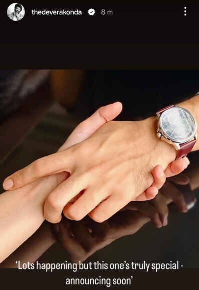 ఒక అమ్మాయి చేతిలో చెయ్యి వేసిన ఫొటోను విజయ్ షేర్ చేశాడు. దీనికి ఒక క్యాప్షన్ కూడా పెట్టాడు. ‘ఎన్నో జరుగుతున్నాయి. కానీ ఇది నిజంగా ప్రత్యేకం. త్వరలోనే చెపుతా’ అని రాశాడు. ఆ రెండో చెయ్యి ఎవరిది అనే సస్పెన్స్ ఇప్పుడు అభిమానుల్లో నెలకొంది. విజయ్ ప్రేమించిన అమ్మాయిదే అయి ఉంటుందని ఫ్యాన్స్ భావిస్తున్నారు. కొందరేమో అది రష్మిక మందన్న చెయ్యి అని ఫిక్స్ అవుతున్నారు. విజయ్ ఏదో సీక్రెట్ మ్యాటర్ చెప్పబోతున్నాడని మరి కొందరు అంటున్నారు. విషయం ఏమిటనేది అర్థం కావాలంటే విజయ్ చెప్పేంత వరకు ఆగాల్సిందే.