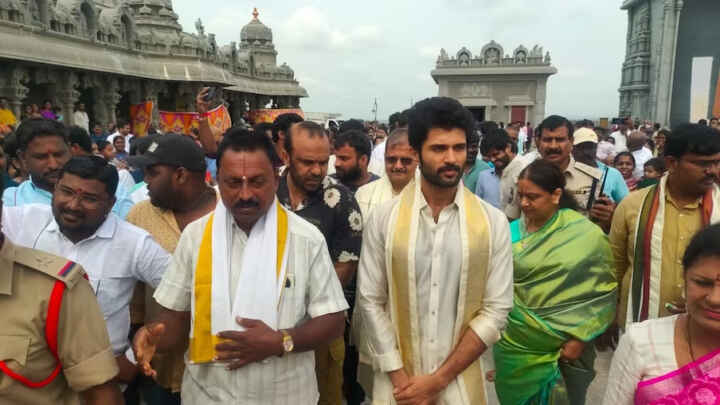 విజయ్ దేవరకొండ లైగర్ తర్వాత శివ నిర్వాణ దర్శకత్వంలో వస్తున్న ఖుషి అంటూ వచ్చారు. సమంత హీరోయిన్గా చేసింది. భారీ అంచనాలు నడుమ ఈ సినిమా సెప్టెంబర్ 1న భారీగా విడుదలై మంచి ఆదరణ పొందుతోంది. ఈ నేపథ్యంలో విజయ్ తన ఫ్యామిలీతో కలిసి యాదగిరిగుట్ట లక్ష్మి నరసింహా స్వామిని దర్శించుకున్నారు. స్వామివారి ఆశీస్సులు తీసుకున్నారు. హీరో విజయ్ దేవరకొండ, దర్శకుడు శివ నిర్వాణ, నిర్మాతలు నవీన్ యెర్నేని, వై రవి శంకర్ తమ కుటుంబ సభ్యులతో కలిసి యాదాద్రి లక్ష్మీనరసింహస్వామి ఆలయాన్ని సందర్శించారు. దీనికి సంబంధించిన పిక్స్ ప్రస్తుతం సోషల్ మీడియాలో వైరల్గా మారాయి.
