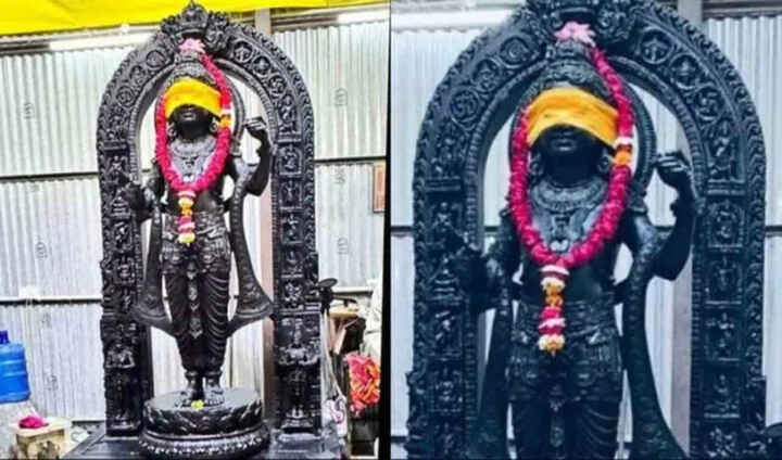 ప్రాణప్రతిష్టకు ముందు అయోధ్య రామాలయ గర్భగుడిలోకి చేరిన రామ్ లల్లా విగ్రహం తొలి ఫొటో తాజాగా విడుదలైంది. కళ్లకు గంతలతో ఉన్న ఫొటో బయటకు వచ్చింది. నల్లటి ( కృష్ణశిల) పద్మపీఠంపై బాలరాముడు దర్శనిమచ్చాడు. ఈ రామ్ లల్లా విగ్రహాన్ని కర్ణాటకకు చెందిన అరుణ్ యోగిరాజ్ అనే శిల్పి రూపొందించిన విషయం తెలిసిందే.