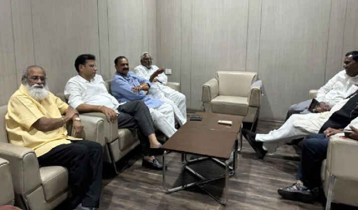 హైదరాబాద్లోని గాంధీ భవన్లో మంత్రులు ఉత్తమ్ కుమార్ రెడ్డి, శ్రీధర్ బాబుతో బీజేపీ ఎంపీ, దర్శకుడు రాజమౌళి తండ్రి విజయేంద్ర ప్రసాద్ సమావేశమయ్యారు. చేనేత, విద్యకు సంబంధించిన విషయాలపై చర్చించడానికి మంత్రి శ్రీధర్ బాబు సమయం ఇవ్వాలని విజయేంద్ర ప్రసాద్ కోరారు. చేనేతను పరిశ్రమల శాఖకు లింక్ చేసే విషయంలో చర్చిస్తానన్నారు. అయితే, తాను అమెరికా వెళ్తున్నానని, వచ్చాక సమయం ఇస్తానని మంత్రి శ్రీధర్ బాబు చెప్పారు.