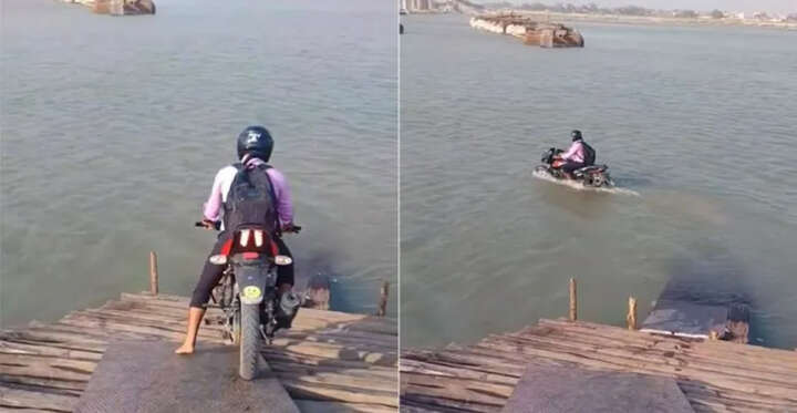 బైక్ను డ్రైవ్ చేసుకుంటూ నేరుగా నదిలోకే వెళ్లిపోయాడు..