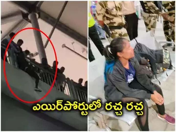 శంషాబాద్ ఎయిర్పోర్టులో యువతి హల్చల్..