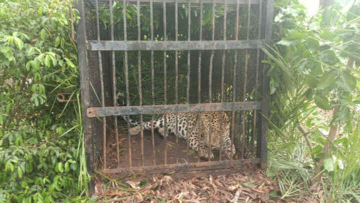 బోనులో చిక్కిన చిరుతపులి
