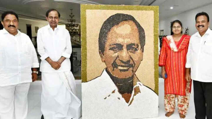నవధాన్యాలతో కేసీఆర్ చిత్రపటం..