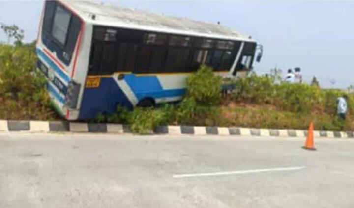 డివైడర్పై దూసుకెళ్లిన ఆర్టీసీ బస్సు.. తృటిలో తప్పిన పెను ప్రమాదం