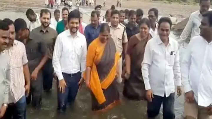 కాన్వాయ్ని విడిచి..వాగు దాటిన మంత్రి సీతక్క